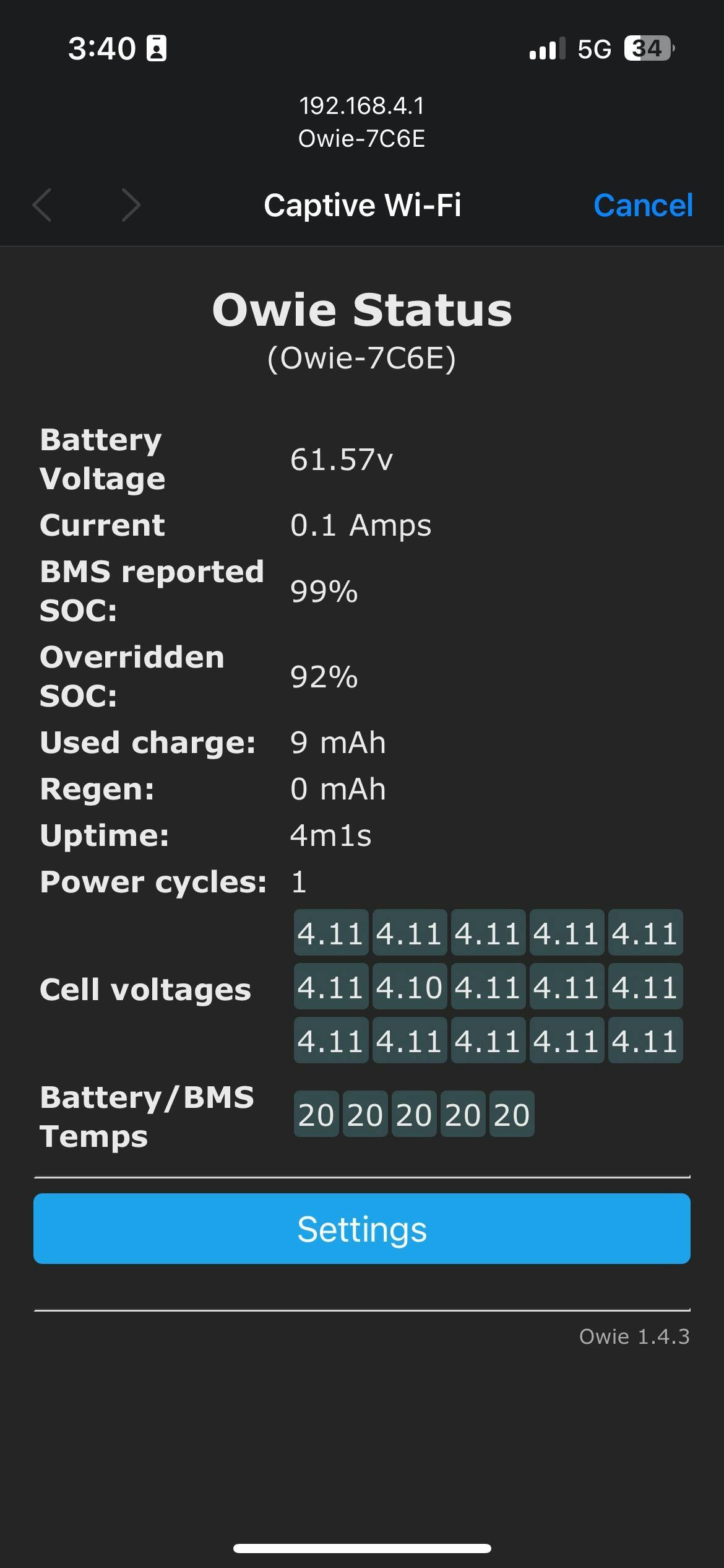 - Shows various stats about your battery on a web page through Wi-Fi - Voltage, current, individual cell voltages and more.